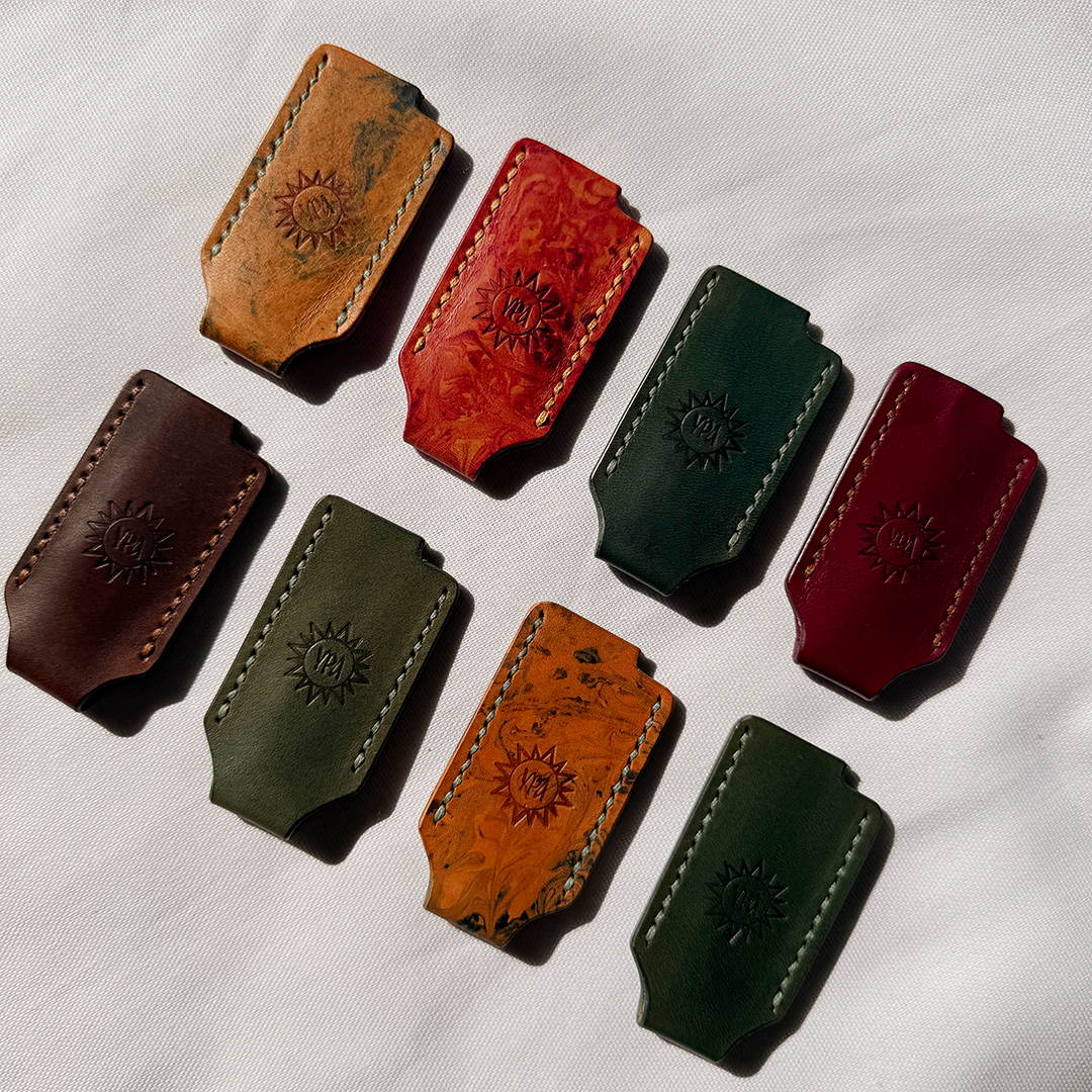 Snug at first, they soften and stretch over time to fit most lighters — including the large overseas-style BICs. Like all true leather goods, they mould to your habits, deepen in tone, and grow better with age.